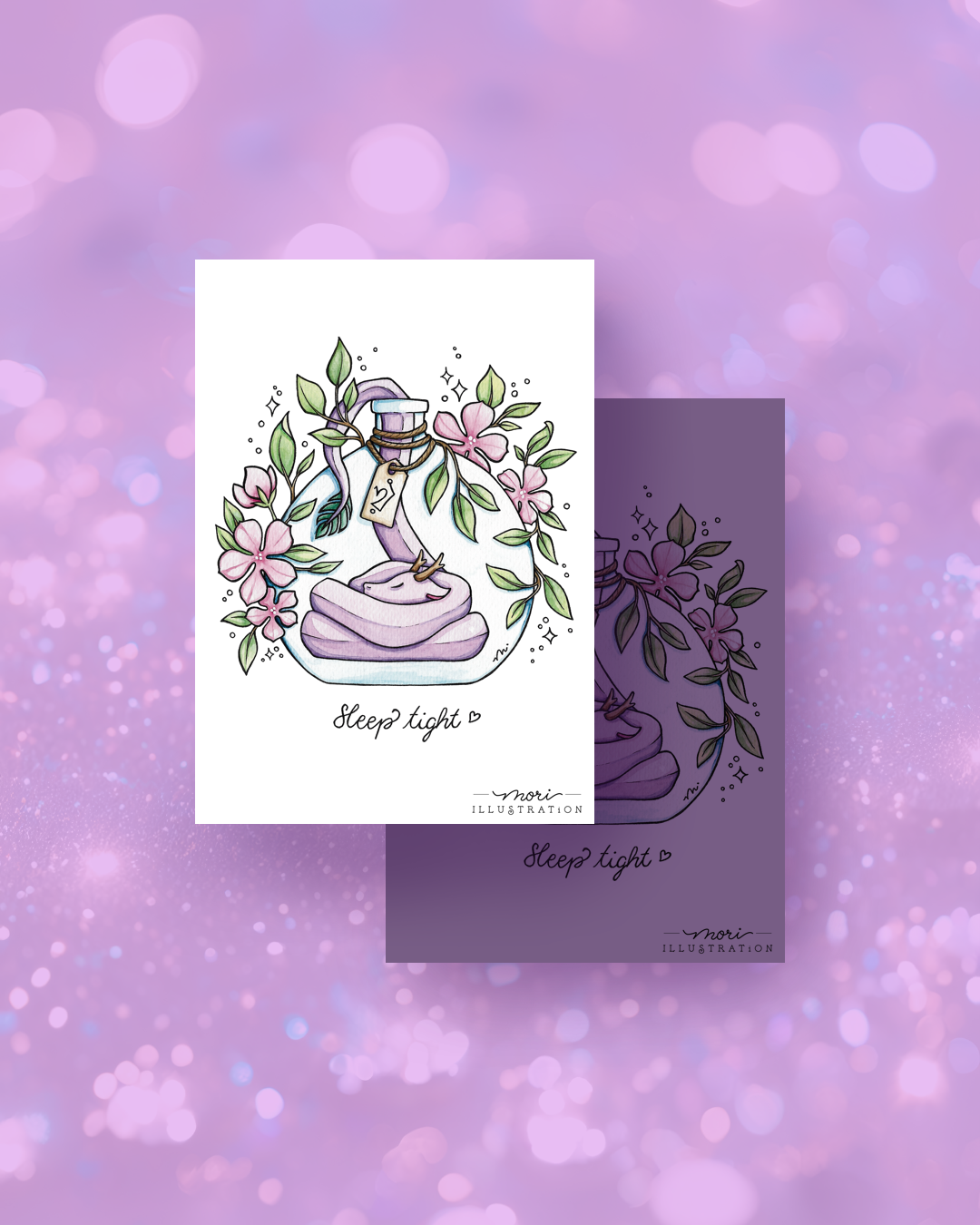 Illustration au format A5 (14,8 x 21 cm) imprimée sur du papier épais irisé, réalisée à l'aquarelle.